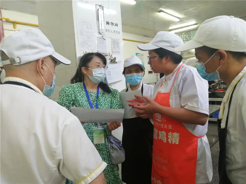 在高考期间,绵阳市市场监督管理局科技城新区分局的领导专程到我校膳食中心驻点,通过检查膳食中心操作区域卫生环境、询问工作人员食品加工制作工序、查阅购进食品台账及留样记录、晨检记录、餐饮具清洗消毒等,了解并掌握膳食中心的食品安全状况,为我校高考期间的食品安全保障工作又增添了一重保险。